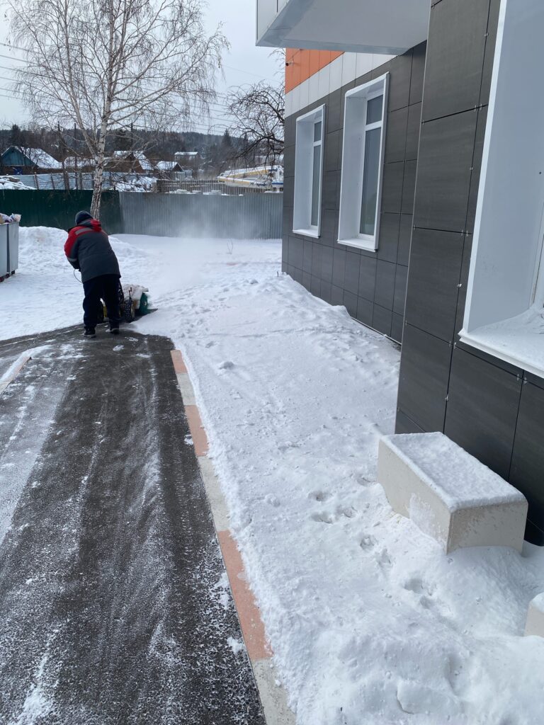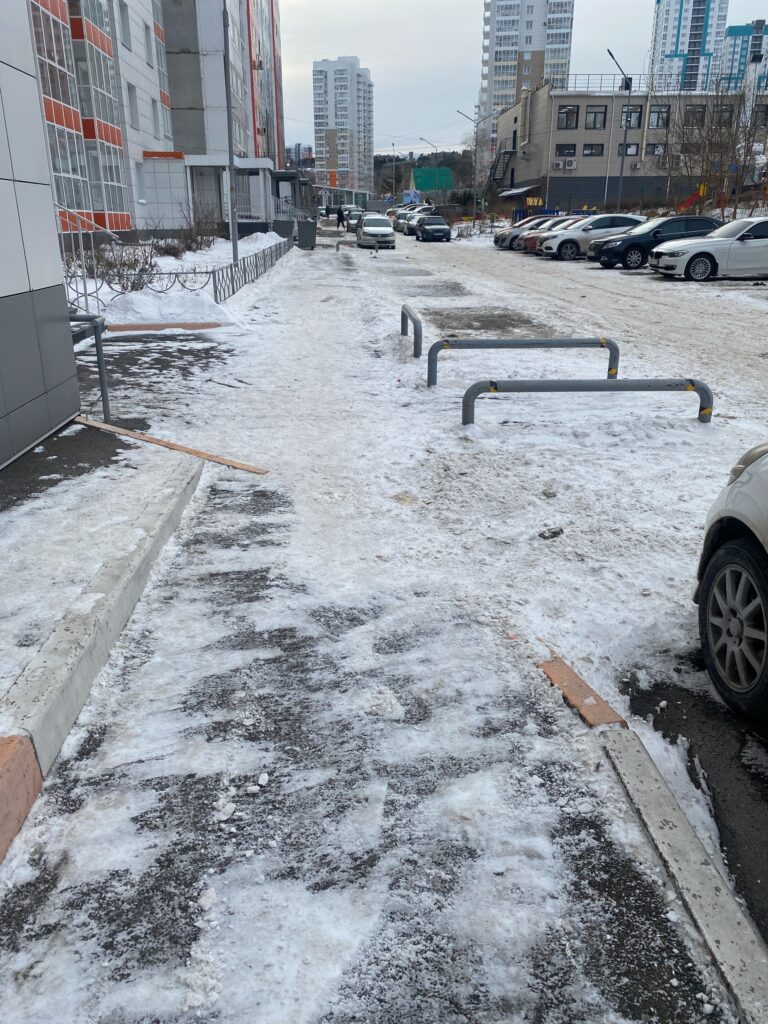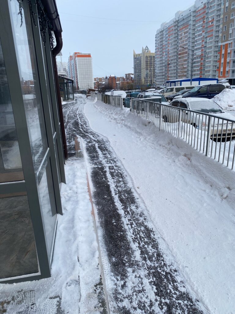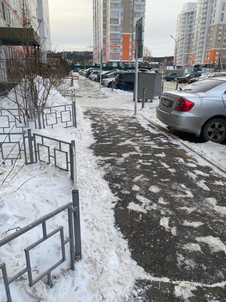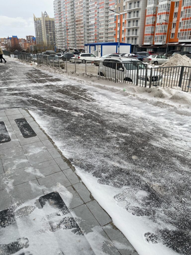 С начала ноября, как только выпал снег, дворники ежедневно, с 7 утра чистят пешеходные зоны всех МКД, а так же отсыпают ледяные корки поваренной солью или песком.